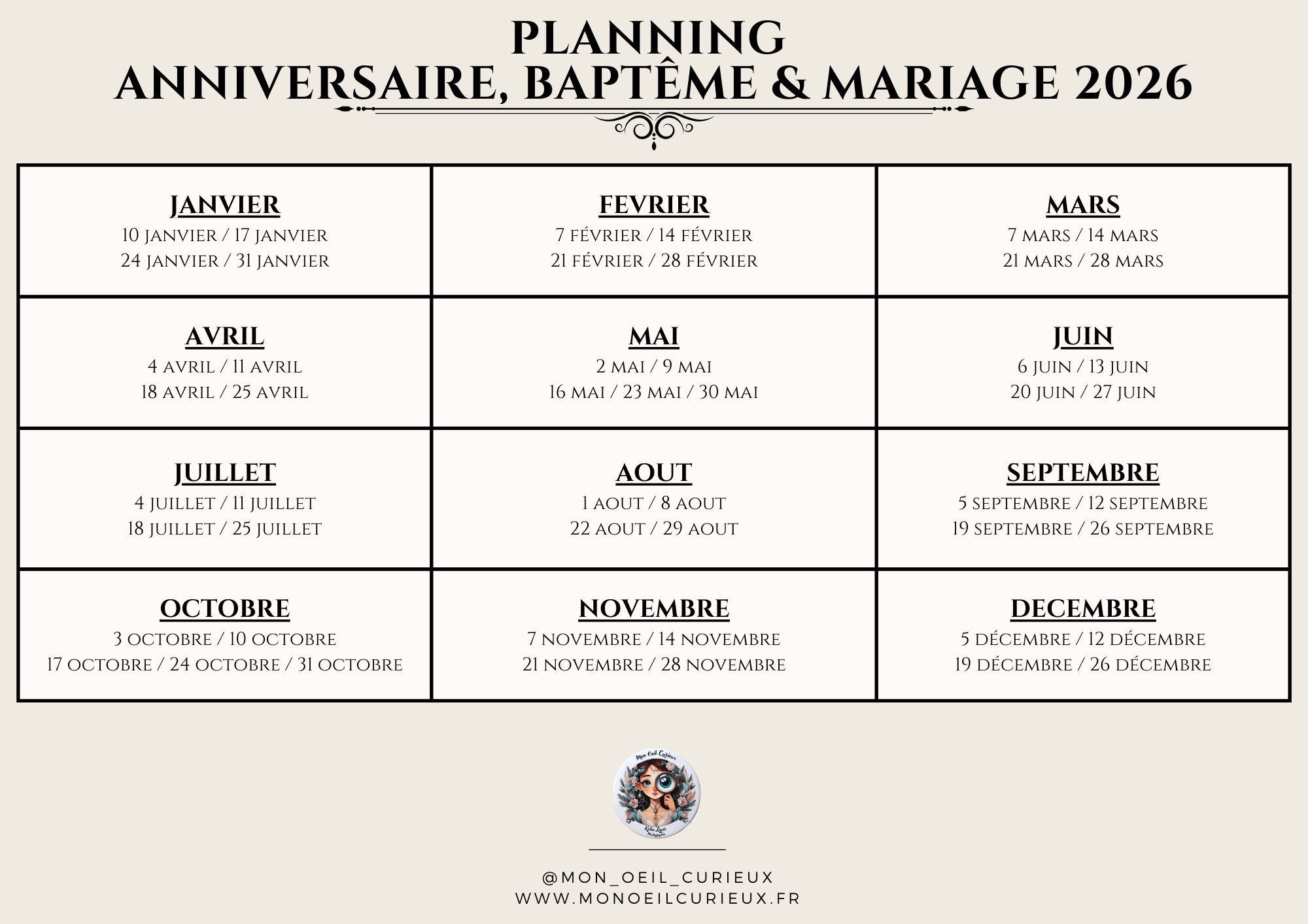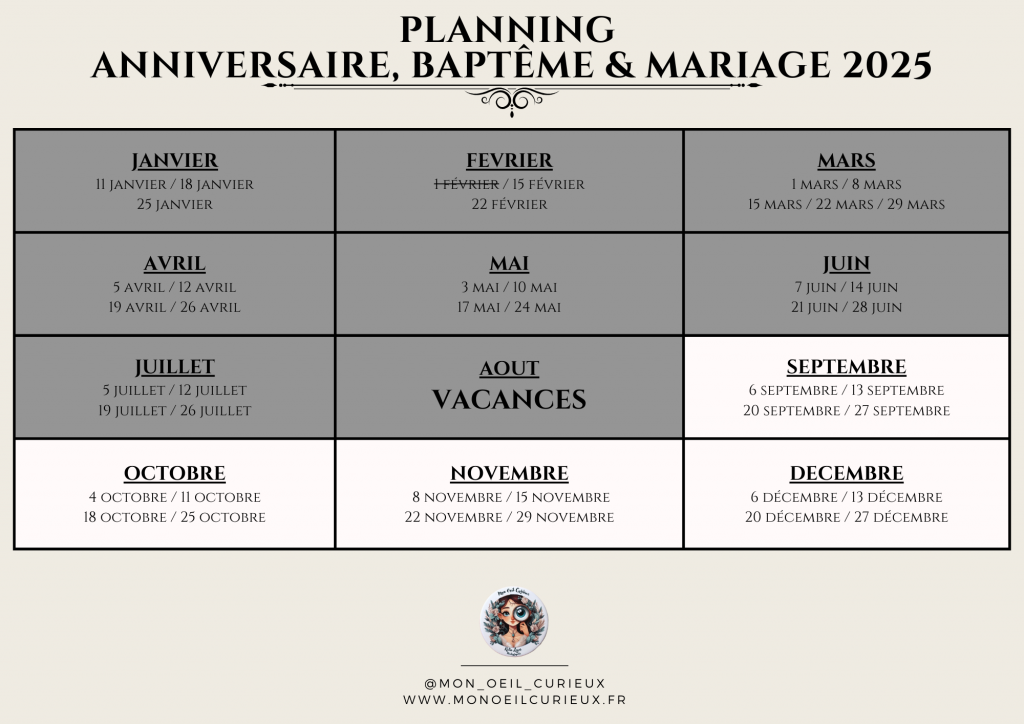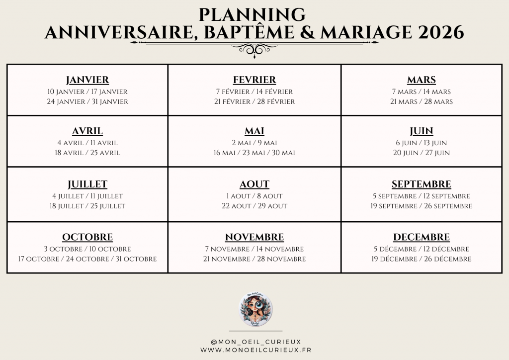 GALERIES, DEPLACEMENTS & PLANNINGS MARIAGE 2025-2026